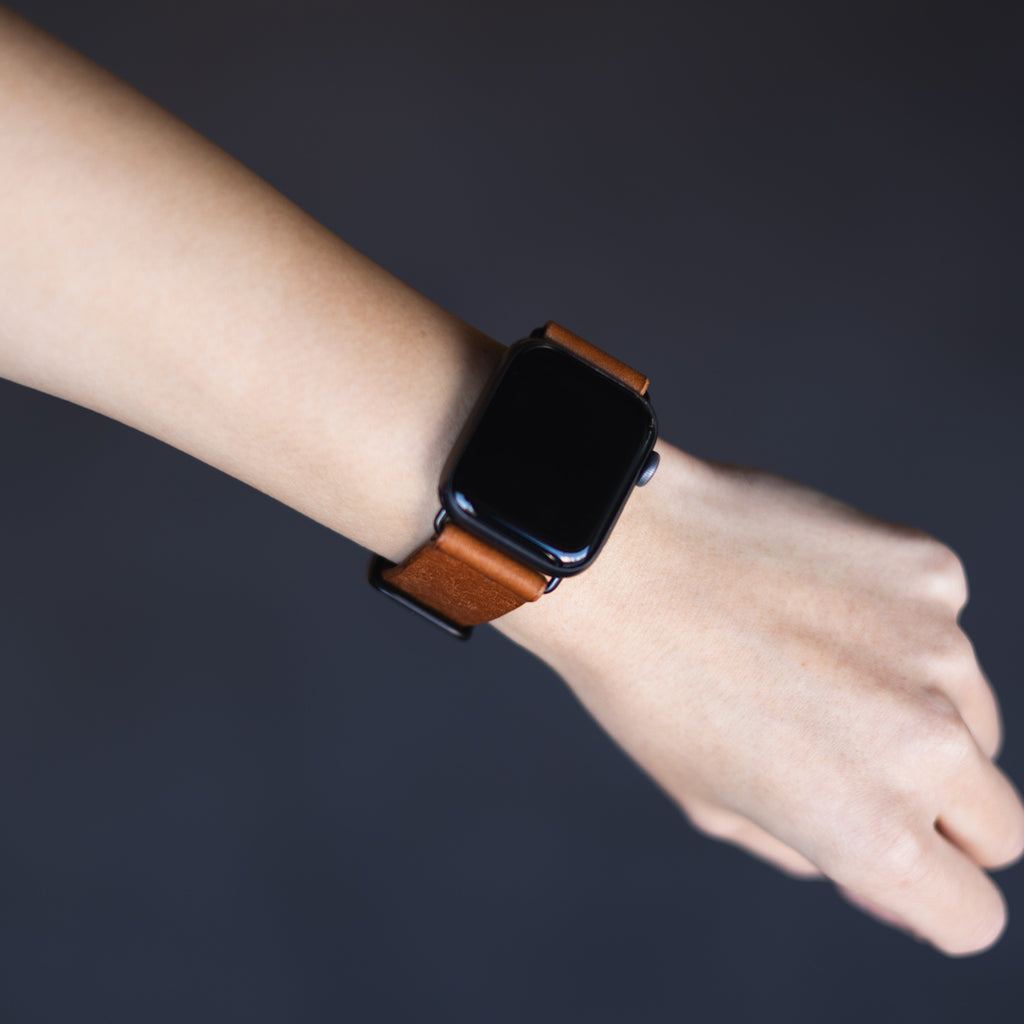 使うほどに味わいが増していくApple Watchのバンド。フォーマルな場面でも日常使いでも、手元を上品に彩ります。革と金具の色をお選びいただき、時計サイズと腕周りの長さに合わせてひとつずつお作りします。